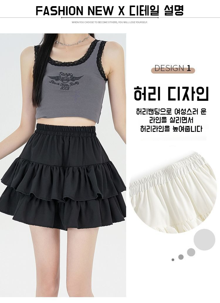 여성 하이웨스트 프릴 스커트 봄여름 스타일