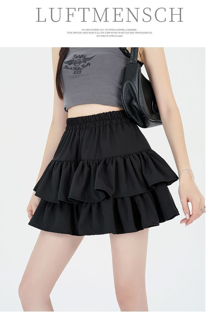 봄여름 키 작은 프릴 스커트 여성 하이웨스트 날씬해 보이는 반신 스커트 케이크 스커트 스커트 프릴 봄여름 하이웨스트 반신 스커트