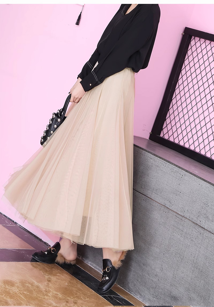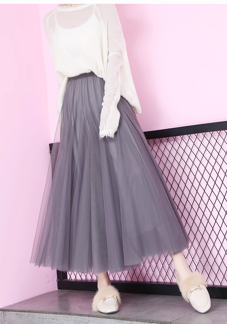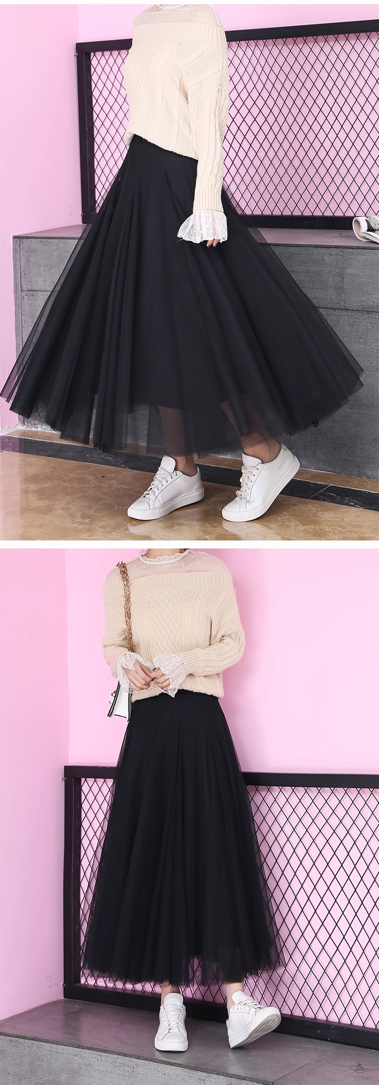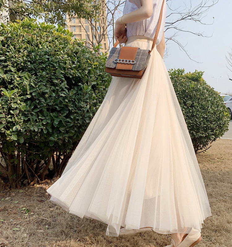 학생 추동 스커트 여중 롱 망사 스커트 안감 스커트 여중 롱 망사 스커트 망사 학생 추동 스커트